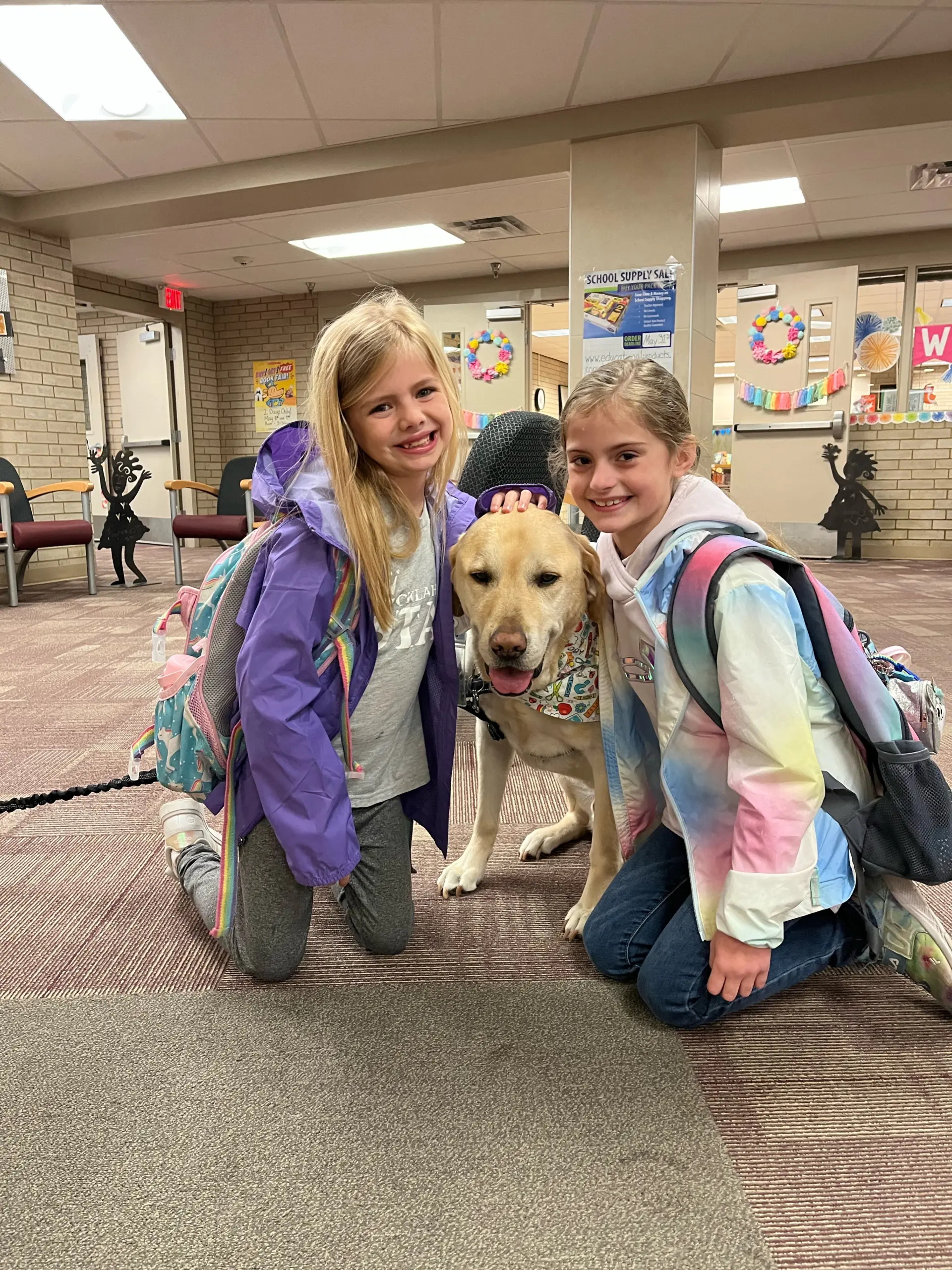 Every Tuesday and Thursday at Jenks Southeast Elementary, students are greeted not only by teachers and friends but also by the wagging tail of a gentle Yellow Labrador Retriever.