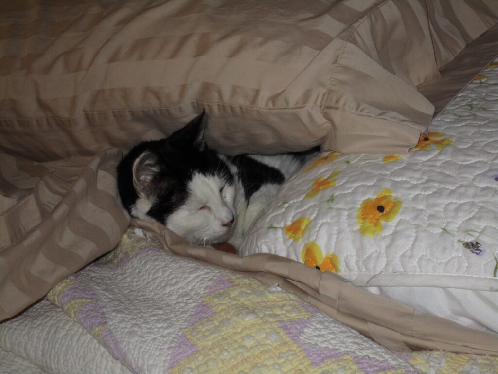 Midnight, a long-haired tuxedo cat who preferred me to his house next door, taught me how to focus on a true desire — sleeping on the big bed.
