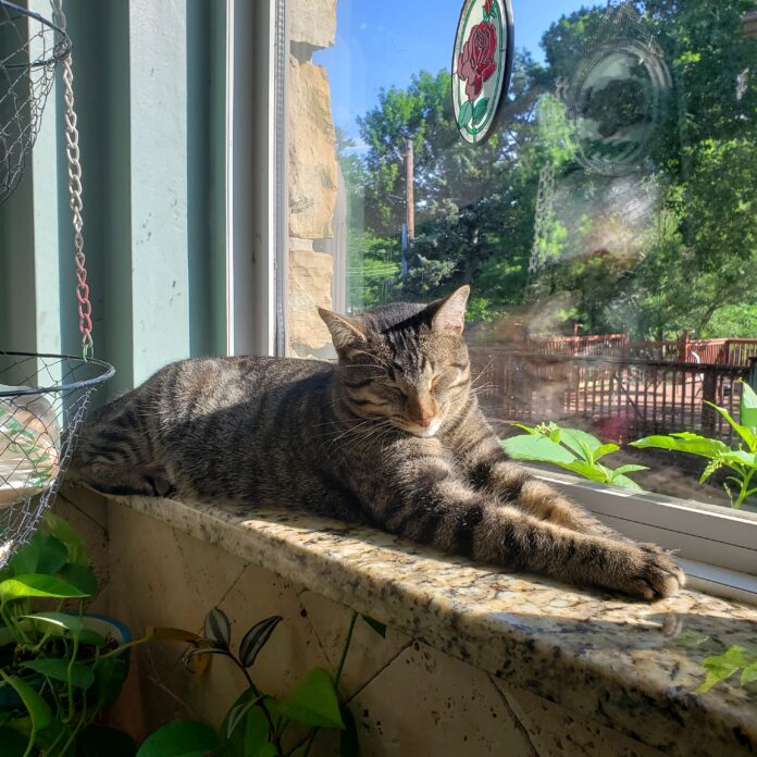“Just a few months before I found the kitten, my husband, Ted, and I had to have our dog Newton, that we had had for 12 years, put down, so we were still grieving,” Bachmann says. “I often wonder how the kitten ended up at that intersection, and I suspect he might have been dumped. He had clearly been around people before and could not have been there for very long because he was so tiny and without food or water on a hot day. He would not have lasted very long. The ‘cat distribution system’ brought him to us to help us get past losing Newton.