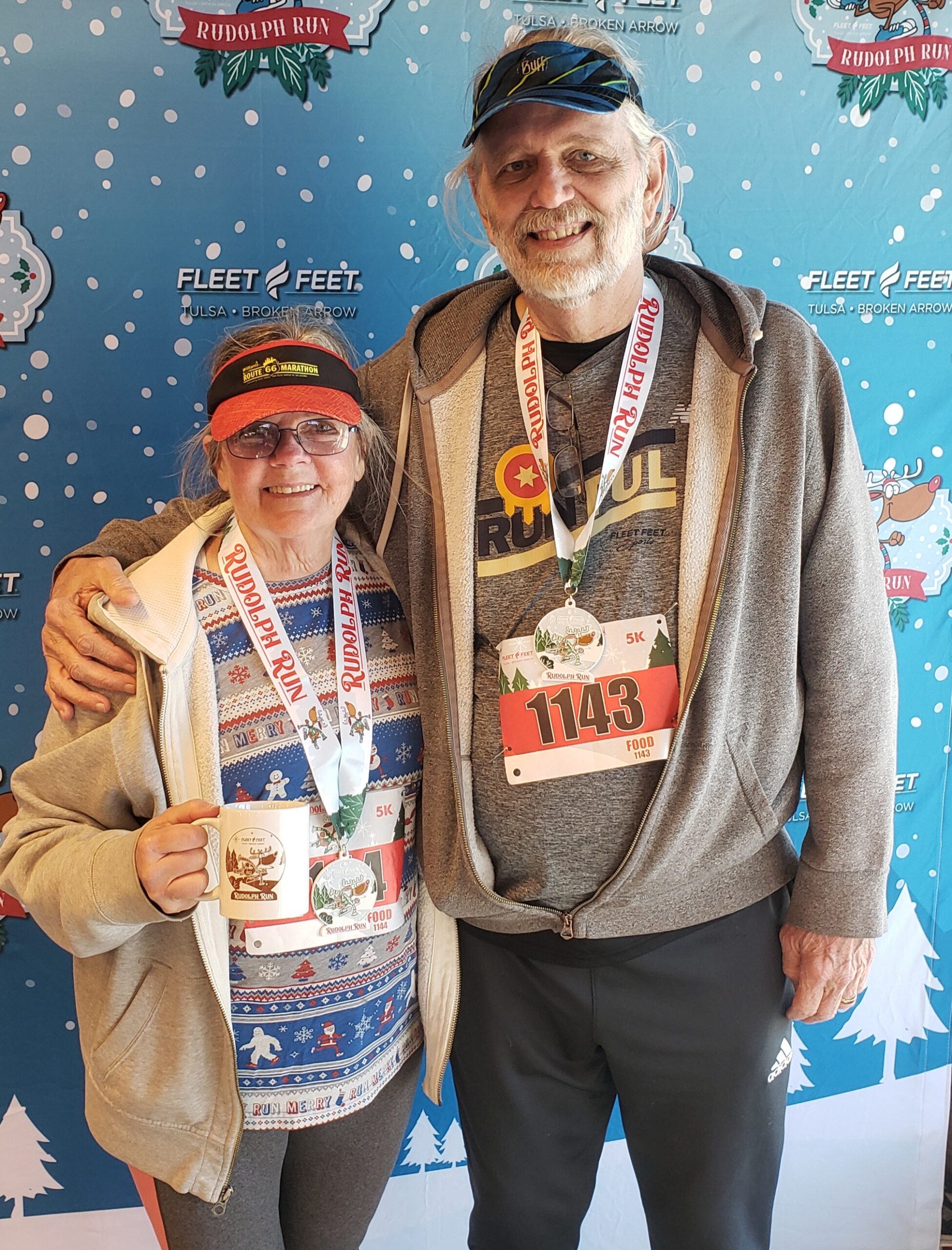 Fast-forward almost a year: Bachmann says, “In April 2024, I ran the Oklahoma Aquarium run in Jenks, and Jenks Animal Control had a couple of dogs at the finish line who were available for adoption. I met one of those dogs and could not quit thinking about him. He looked like a Pyrenees-husky mix, with one blue eye and one brown. I waited a couple of weeks, thinking, ‘We have three cats and a dog and shouldn’t add another.’ But the thoughts wouldn’t go away, and I kept looking at a photo of the dog on the Jenks Animal Control website. Then we adopted him. We changed his name from Titan to Buster, and Zoot had to adjust to a big dog joining the family.”