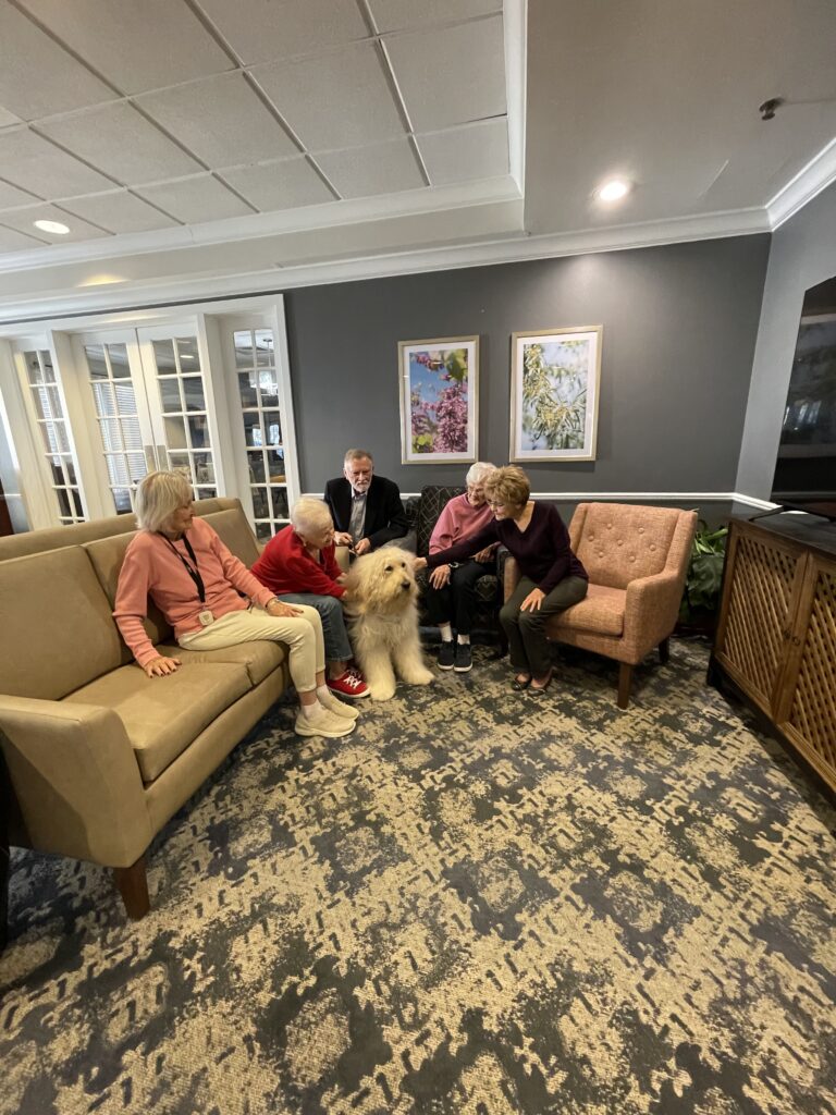 “For many of the people we visit, therapy dog visits can improve their mental health and brighten their day and their outlook on life,” he says. “Quite often, I see them come out of their shell when the dogs are with them. And petting or touching a therapy dog may relieve tension and even reduce blood pressure. For many people we visit, the dog seems to relieve loneliness or sadness. We dog handlers see so many positive benefits during each of our visits.”