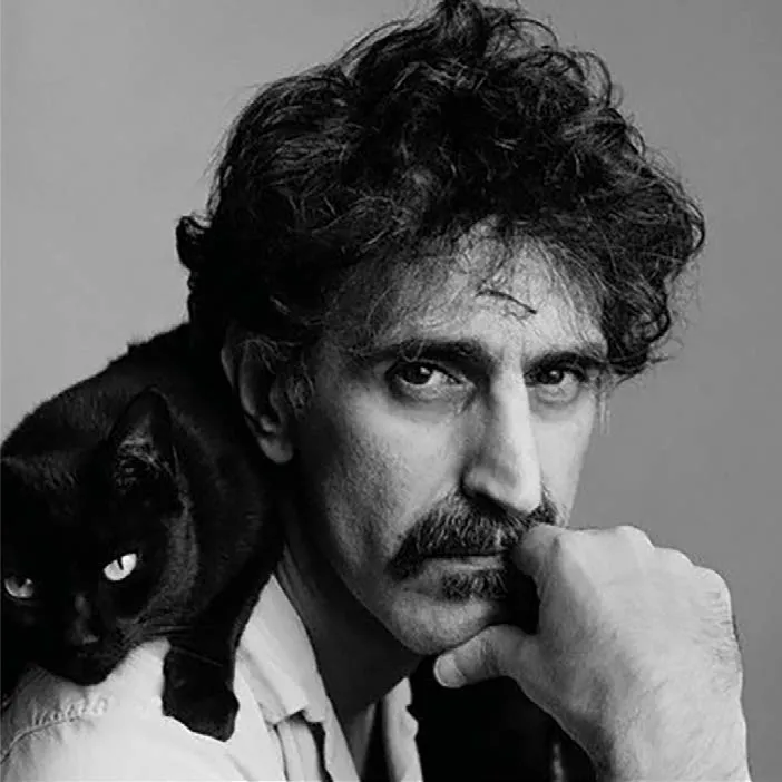 Frank Vincent Zappa (1940–1993), known as the cat guy, had other felines too — including a white one, Tweezer; a gray-and-white one, Bill; a black-and-white Persian, Fightey Bitey; and a Siamese, Gorgo. Zappa and his cats were photographed together many times, even appearing on album covers. He referred to cats in at least two of his songs, Yo Cats and Alley Cat.