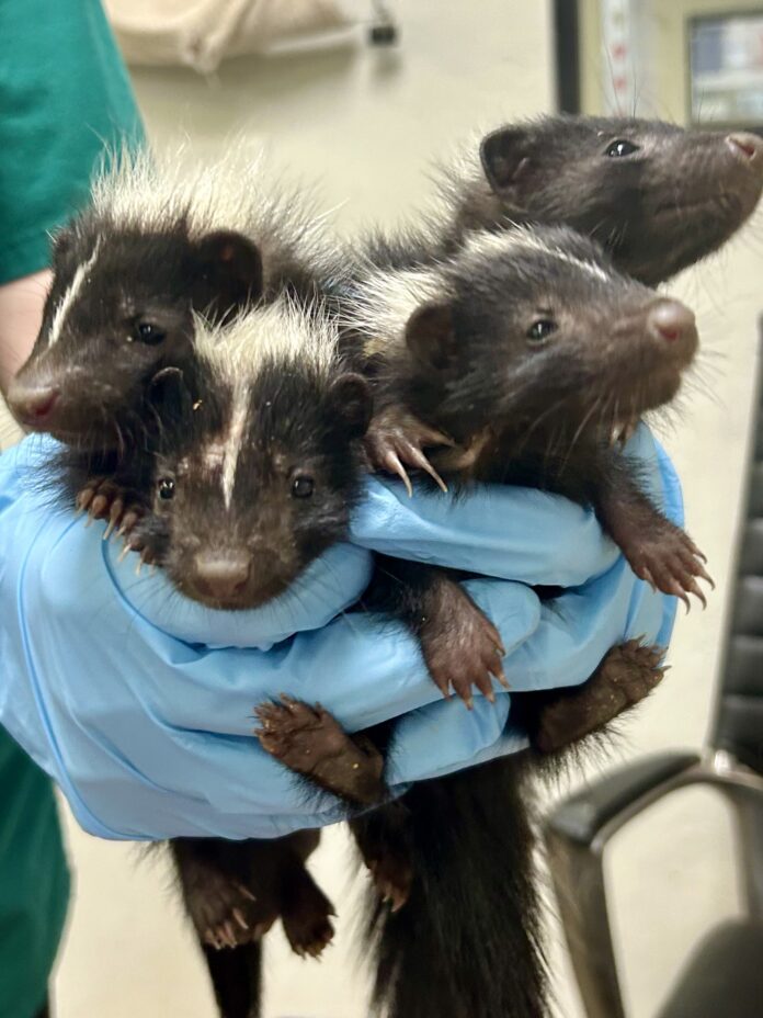 Striped skunks, northern raccoons, and red and gray foxes are excellent mothers and will defend their young against predators. Any of these moms will move her entire litter to a new den site if she thinks a location has become unsafe. Skunks and raccoons have been recorded going into burning buildings and swimming through floodwater to save their babies.