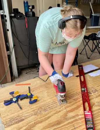 “A big thing they have learned and what we have focused on is using power tools,” Hartman shared. “They all jumped at the chance to learn how to use power tools to build something by hand. They have used a miter saw, circular saw, air-powered nail gun, they used sanders, multiple drills, drill bits, and learned how to drill a pilot hole. So that was pretty great.”