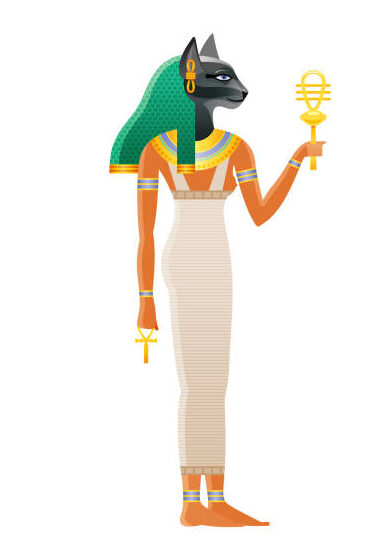 Bast — the ancient Egyptian goddess of fire, the sun, and war — was depicted with the head of a lioness and was regarded as a fierce protector of her worshipers and a defender of the pharaoh and the sun god, Ra. Bast evolved into a cat goddess and was shown with the head of a cat. Her prominence in Egypt’s Lower Kingdom diminished in favor of her counterpart in the Upper Kingdom, cat goddess Sekhmet.