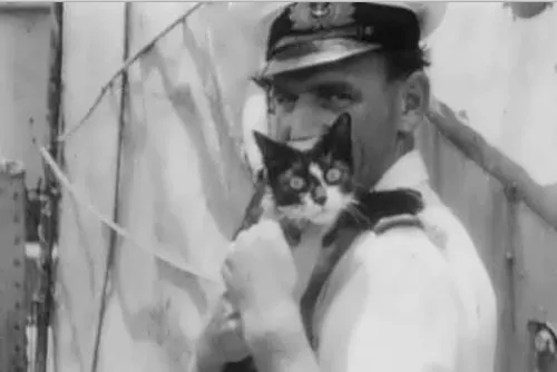 Probably the most famous feline in World War II, whose original name is not known, was the companion of a German sailor whose name is also not known. They were aboard the German battleship Bismarck when it was sunk on its first mission on May 27, 1941. The crew of the British destroyer HMS Cossack picked up the little black-and-white cat, who was clinging to a board floating in the ocean.