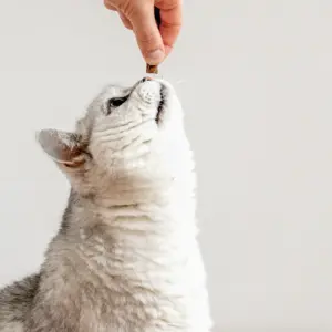 Tip: Turn snack time into enrichment! Hide a few treats in a paper bag, small cardboard box or puzzle feeder, so your cat can use their nose and paws to “hunt” each bite. Small changes in placement make each session a new challenge.