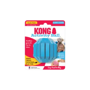 - Interactive toys: Treat dispensing toys, like the Kong™ puppy activity ball, support appropriate chewing behavior while encouraging gentle play and problem-solving skills. It’s a great way to keep shy puppies engaged, build confidence independently and provide a calming activity during downtime.