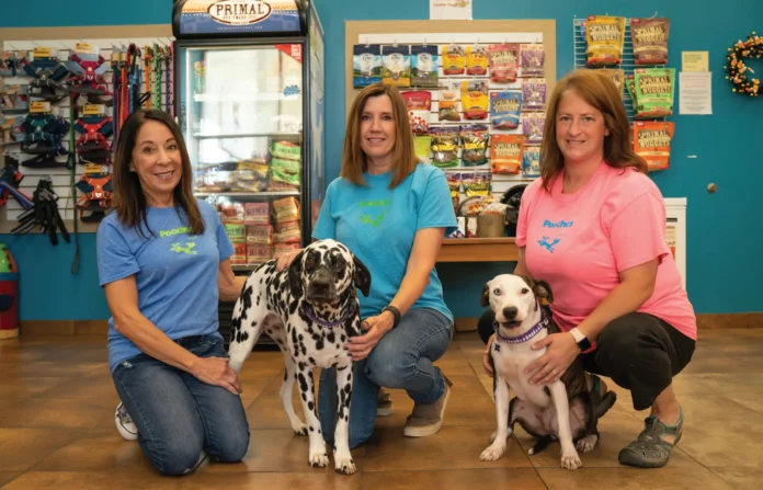 “Lawanna and I, along with our amazing manager Lindsay Henry and all of our dedicated employees, truly love dogs,” Nancy says. “I can’t tell you how many times I find an employee sitting in a boarding kennel with a dog on their break or asking if they can take a dog into the break room for some one-on-one time. Our dedication to the dogs goes well beyond our hours of operation. It’s our passion. Our Pooches dogs become part of our family. Lindsay has been invaluable to our team. We also have several long-term employees who are so valuable to us and share our commitment.”