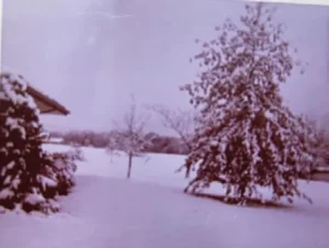 we built elaborate forts and igloos. We lost electricity, lived and cooked by a fire, and the snow we had looked forward to became quite a problem. No school for a couple of weeks!