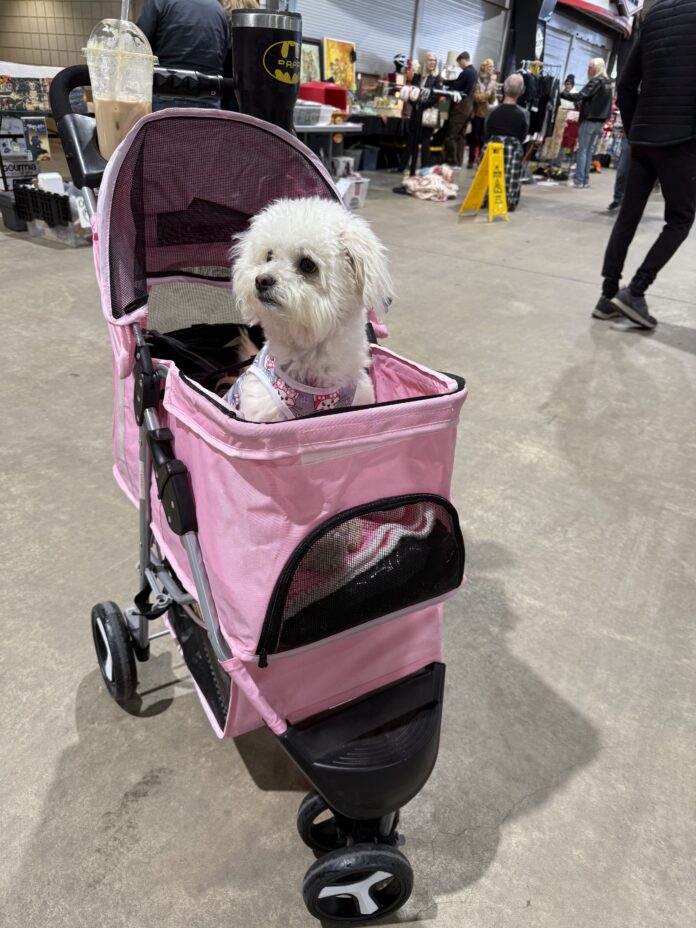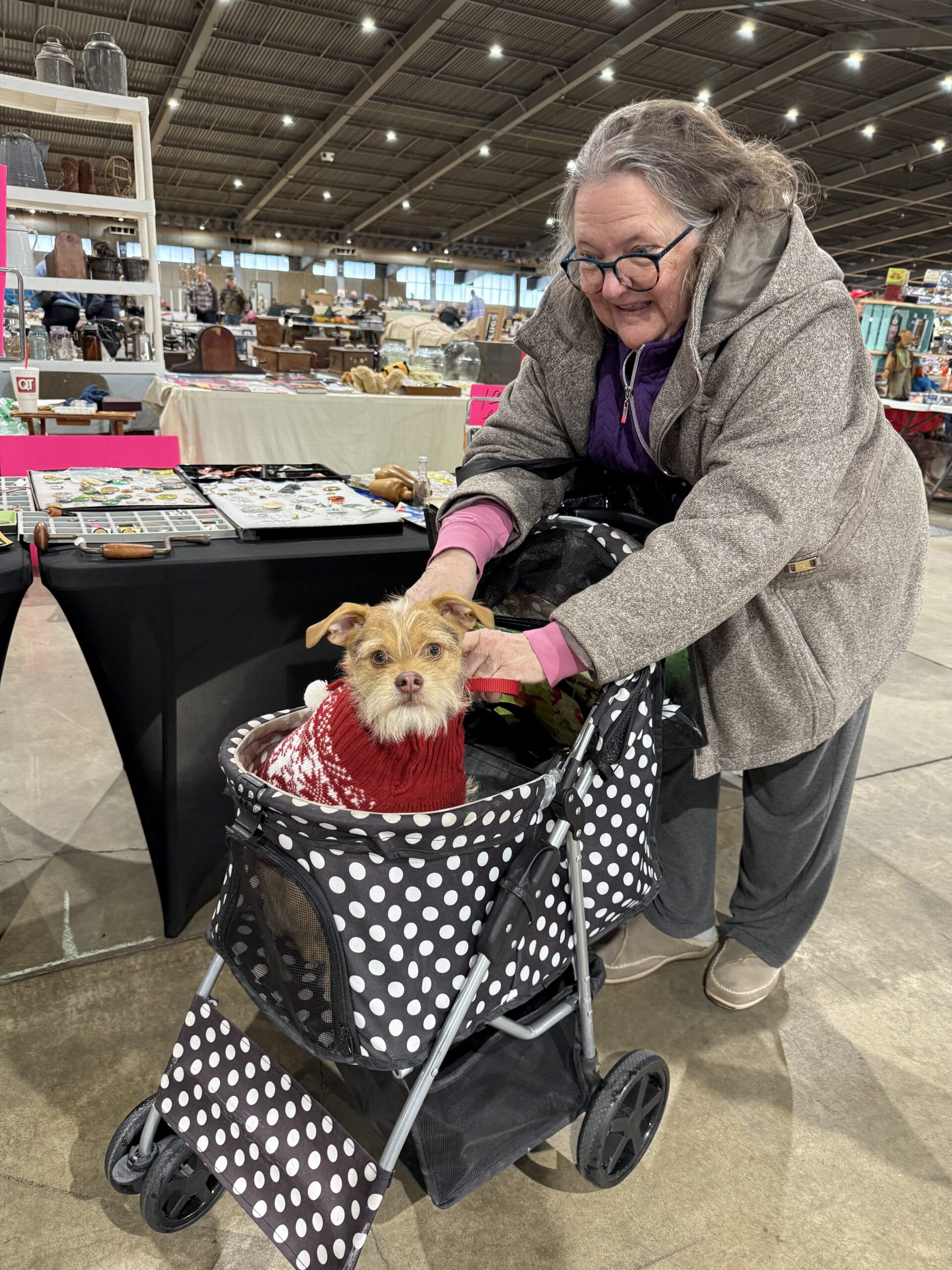 Bella, half Yorkie and half Shih Tzu, wasted no time checking out the Tulsa Flea Market once the doors opened on a Saturday in late winter 2025. She was fashionably dressed in a pink coat and matching leash.