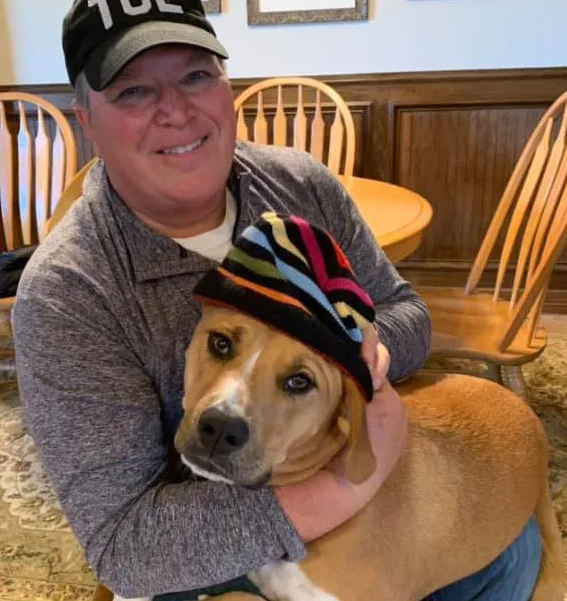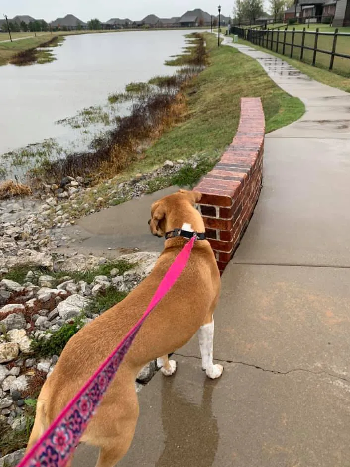 We met her before she was ready for adoption at a pet adoption fair in the Jenks River West area. There was a booth set up by Lakes Area Pet Society, and she caught our eyes. She was the runt of the litter with big, brown, melt-yourheart eyes and so shy and gentle. We were told she would be ready for adoption in a few weeks and to stay in touch. We called a few weeks later and asked for more information. They were unsure of the breed but thought there was some Boxer and Labrador Retriever in her.