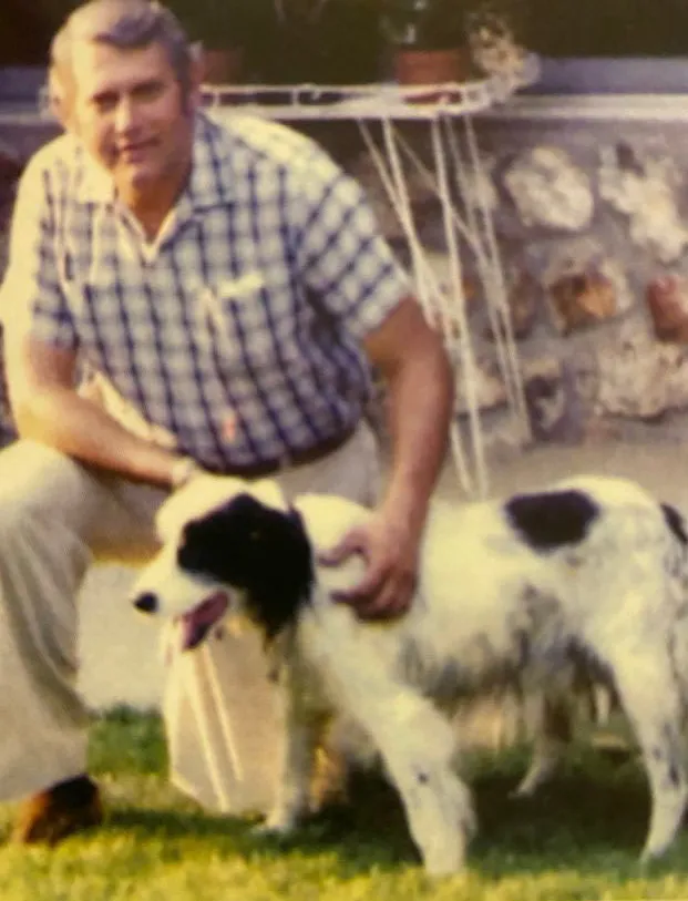 Spot with Karen’s father Kenneth Dugan, 1978